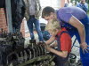 Die Oberschule Spelle, die mit ihrer Schülerfirma „ReLaMa“ unrestaurierte und auch bereits restaurierte Fahrzeuge sowie ein elektronisches Auto-Quiz vorstellte (siehe Fotos), präsentierte einen beeindruckenden „Schrauber“-Nachmittag der besonderen Art. Mit viel Eifer wurde gekonnt ein alter DEUTZ-Treckermotor (4-Zylinder) demontiert. Hierbei wurden sie zeitweise von einigen Gästen tatkräftig unterstützt, die dabei oft ihre „beste Sonntags-Ausgehhose“ verschmutzten.