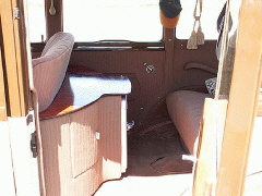 Heizungsrohr hinten links unter der Sitzbank: Das neue aus Bakelit wieder erhältliche Heizungsrohr links und rechts passt perfekt zur Karosse. [Foto 17]