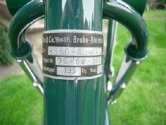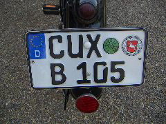 Dann wurde das Motorrad am 17.09.1936 in Lingen zugelassen und bekam das erste Kennzeichen (vorne auf dem Schutzblech angebracht) von insgesamt fünf Kennzeichen (Besatzungszonen etc.).