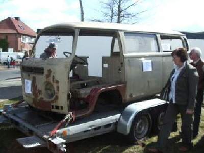 Dann noch ein paar Runden auf dem Hof drehen um noch einige Einstellarbeiten vorzunehmen - jetzt kann er zum TÜV. Am 18.07.2000 war es dann soweit, ab auf den Anhänger und nach Lingen zum TÜV für eine Komplettabnahme.